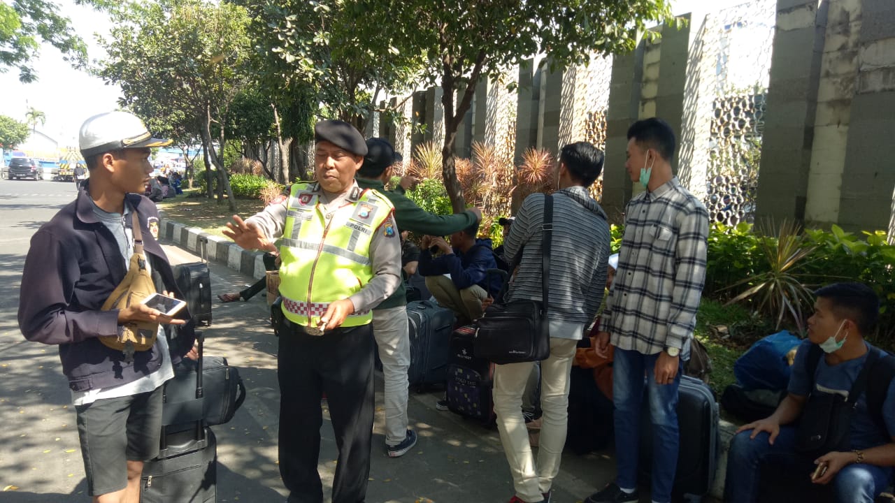 Saat itu personil Satsabhara menghimbau agar para penumpang yang baru turun dari kapal tersebut, berhati-hati membawa barang-barang berharganya.