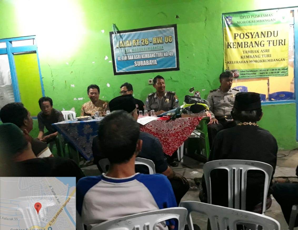 Seperti yang dilakukan Aiptu Mulyadi Herwoyo, Babinkamtibmas Morokrembangan, Polsek Krembangan, Polres Pelabuhan Tanjung Perak saat menemui warga Tambak Asri RT 26 RW 06, Jumat malam, 26 Juli 2019.