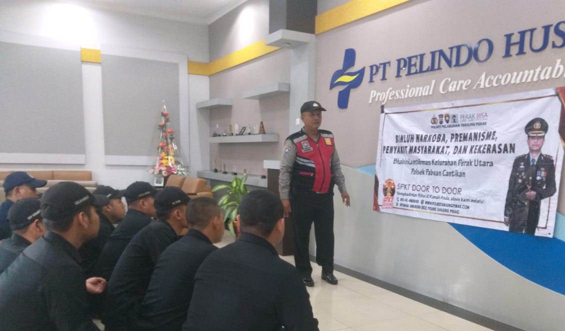 Seputarperak.com- Penyuluhan bahaya narkoba disampaikan Aiptu Made Suarthana, Babinkamtibmas Bongkaran, Polsek Pabean Cantikan, Polres Pelabuhan Tanjung Perak kepada petugas sekuriti Rumah Sakit Porth Health Centre (PHC), Sabtu pagi, 27 Juli 2019.