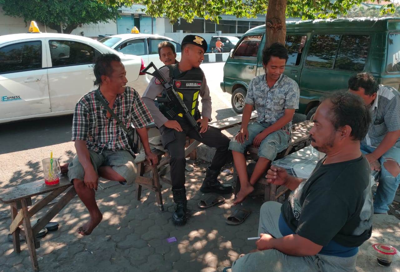 Seputarperak.com- Patroli dilakukan personil Satsabhara Polres Pelabuhan Tanjung Perak di seputaran Terminal Ujung, Jalan Kalimas, Senin sore, 29 Juli 2019.