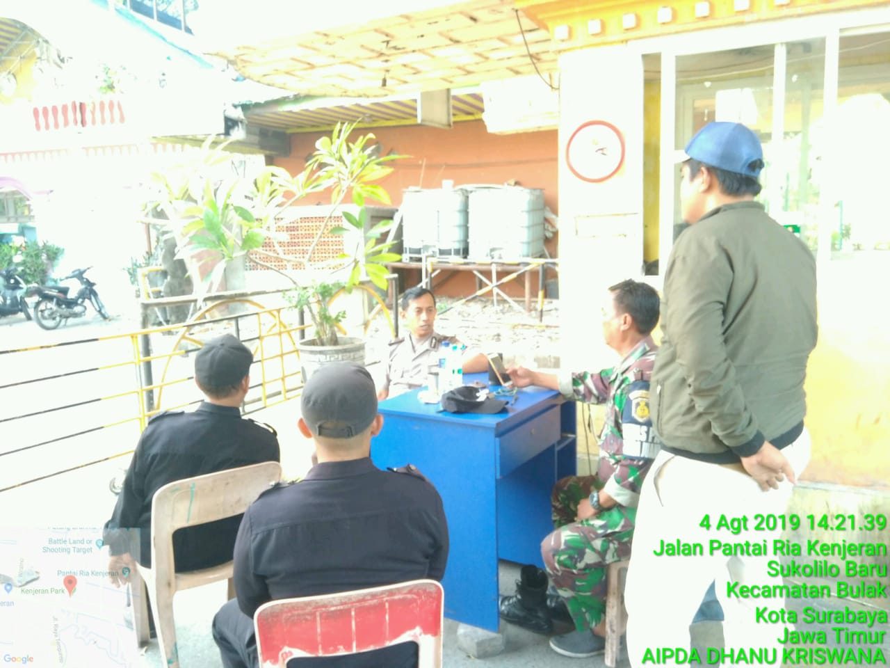 Seputarperak.com- Pesan kamtibmas disampaikan Aipda Dhanu Kriswana, Babinkamtibmas Sukolilo Baru, Polsek Kenjeran, Polres Pelabuhan Tanjung Perak kepada petugas sekuriti Kenpark.