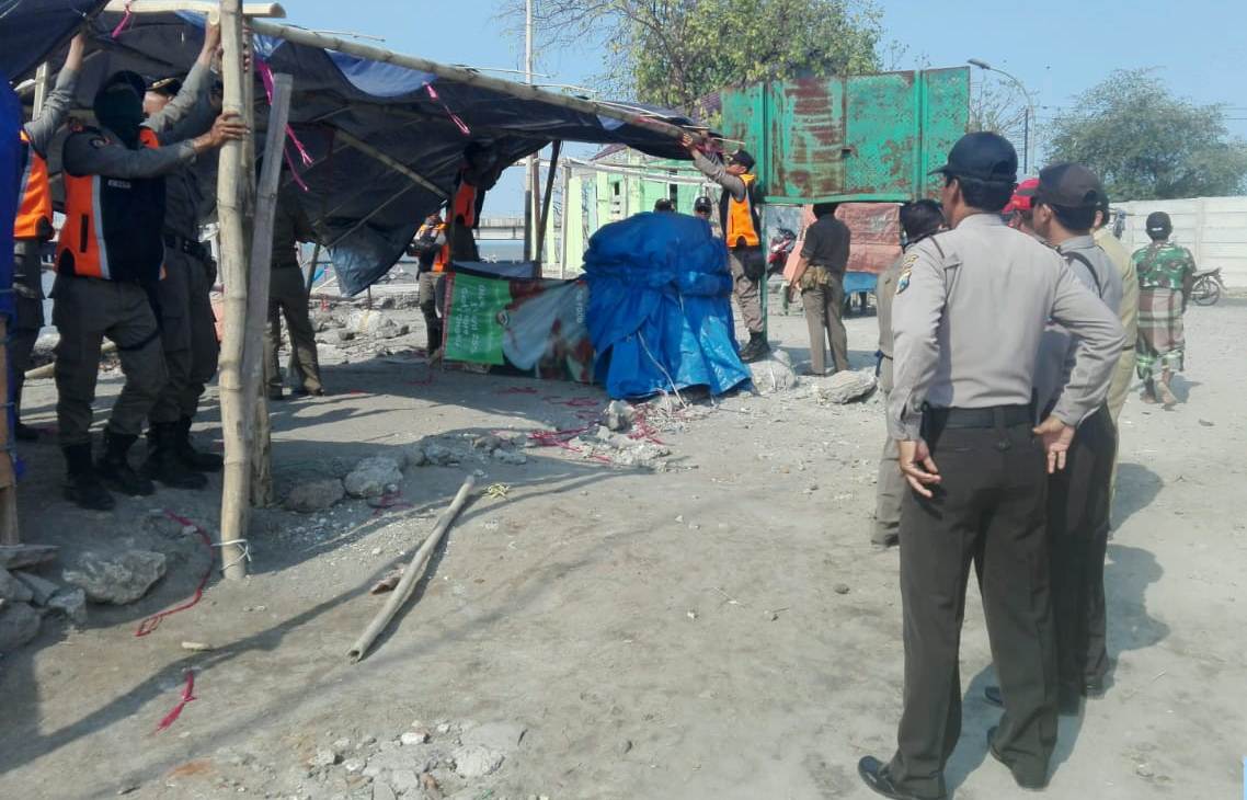 Seputarperak.com-Penertiban lapak pedagang kaki lima (PKL) dilakukan anggota Satpol PP Kota Surabaya di kawasan Barat Jembatan Suramadu, Senin sore, 5 Agustus 2019.