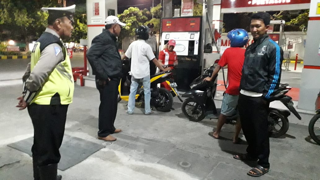 Salah satunya seperti yang dilakukan personil Polsek Asemrowo di SPBU Jalan Dupak Rukun, Senin malam, 5 Agustus 2019.