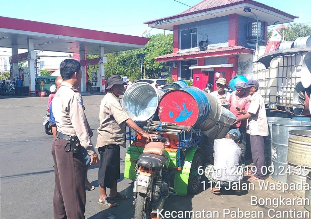 Seputarperak.com- Pesan ketertiban disampaikan Aiptu Made Suarthana, Babinkamtibmas Bongkaran, Polsek Pabean Cantikan, Polres Pelabuhan Tanjung Perak kepada para penjual drum di Jalan Waspada, Selasa siang, 6 Agustus 2019.