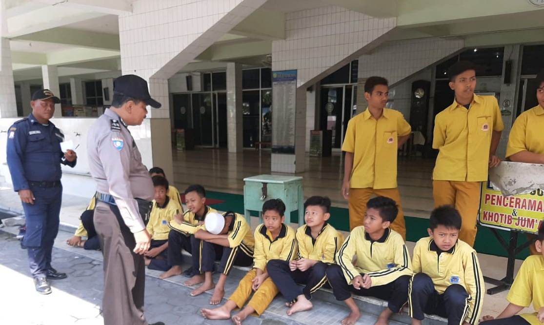 Seputarperak.com- Kunjungan dilakukan Aiptu M Yasin, Babinkamtibmas Krembangan Utara, Polsek Pabean Cantikan, Polres Pelabuhan Tanjung Perak Rabu pagi, 7 Agustus 2019 di SMU Mujahidin, Jalan Perak Barat.